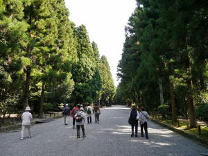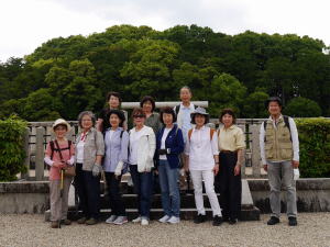 香り良い水が出たので清和天皇が御香宮と名前を付けられたという御香宮神社を出発し、うっそうとした杉並木の参道を経て伏見桃山陵(明治天皇陵)を参拝。ここは豊臣秀吉が築いた伏見城天守閣跡だそうです。