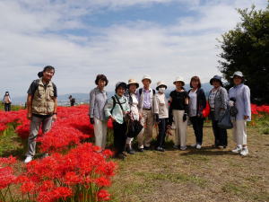 昼食後は田んぼの畔に群生している彼岸花の撮影タイム。すばらしい写真がいっぱい撮れたみたいです!