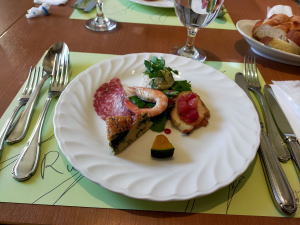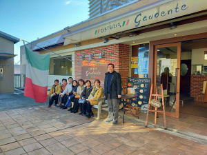 その後はタクシーでハーバーランドの「オステリアガウダンテ」へ。イタリアンの食事会です。ワインで乾杯した後の前菜、ピザ、パスタ、メインの肉料理、ドルチェとどれもが最高!おいしさとおしゃべりで2時間近くも長居をしてしまいました。