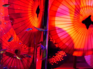 初めての金魚ミュージアムは趣向を凝らした会場、色とりどりの照明、金魚が一層映える小道具など、写真撮影には最高のシチュエーションです。