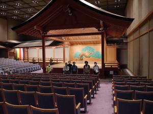 途中、94mもあったという東大寺の七重塔(西塔・東塔)跡を見ながら春日野国際フォーラムの日本庭園へ。若草山を借景として広い庭園は意外と知られていないスポット。また室内では能楽ホールも見学できました。