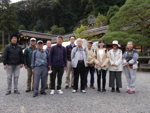 今回は緊急事態宣言解除もあり久し振りの二桁、12名の参加者で京都の松尾大社から嵐山をさるきました。また嬉しいことに72回生の現役学生も参加!